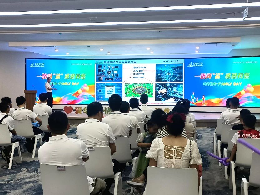 隨后,華宇電子研發(fā)部高級經(jīng)理王釗向家人們作半導體知識科普,為了讓孩子更加清晰了解什么是半導體,王經(jīng)理以身邊常用的電子設備為例,勾起了孩子們的興趣。他們認真聆聽,時不時與家長互動溝通,一片幸福祥和景象。